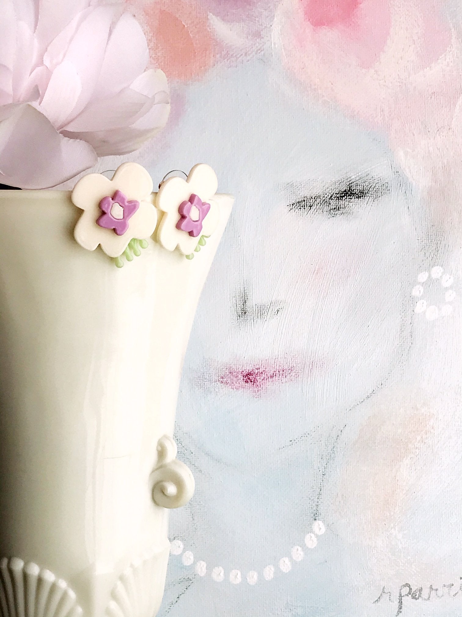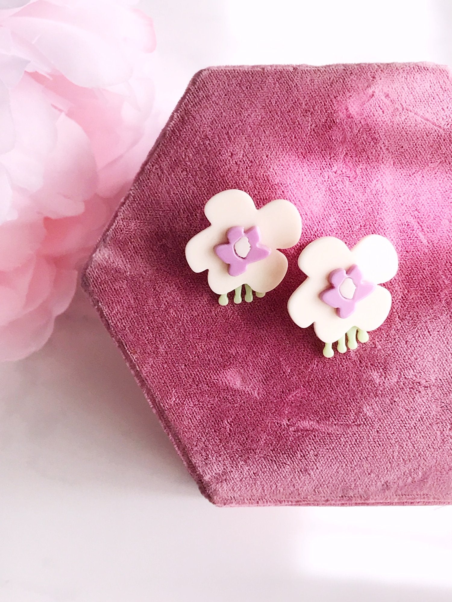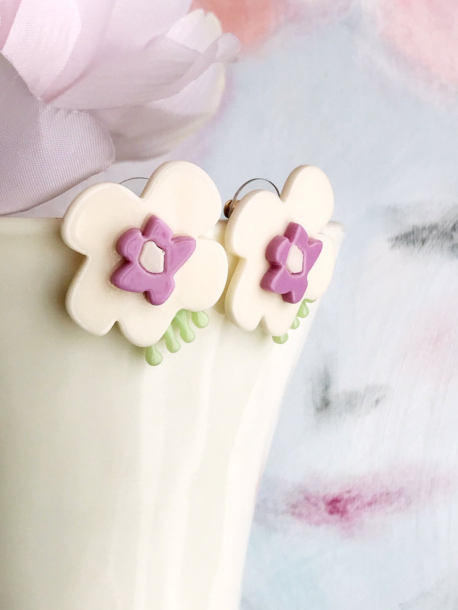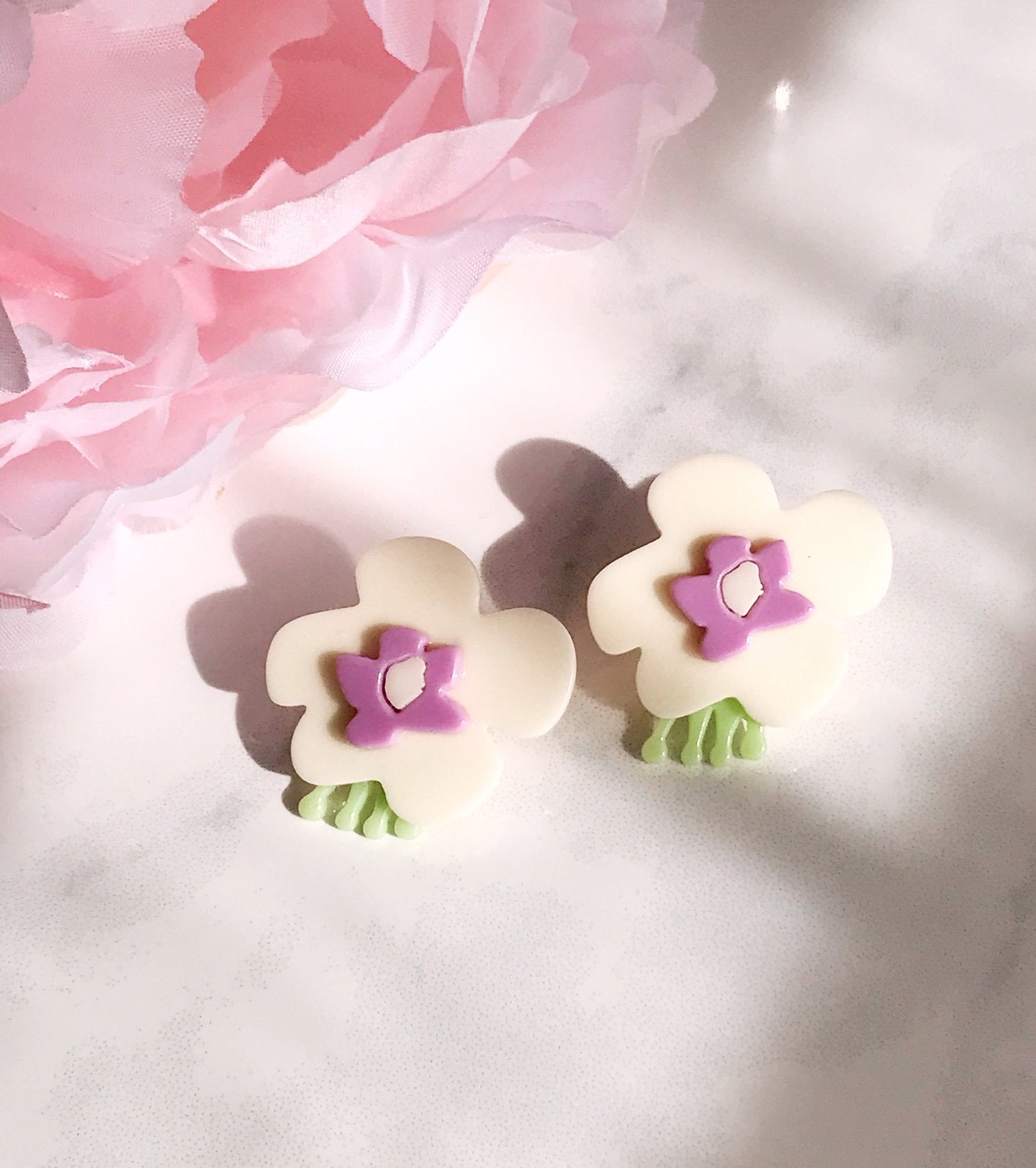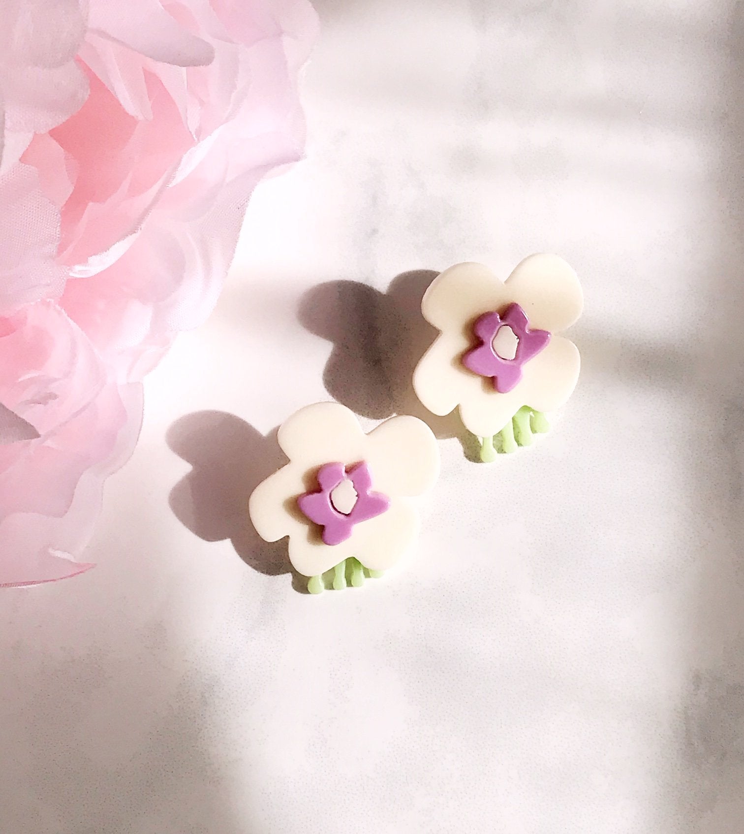 Lightweight layered acrylic stud earrings with stainless steel ear posts. 1-1/8 inches in diameter.